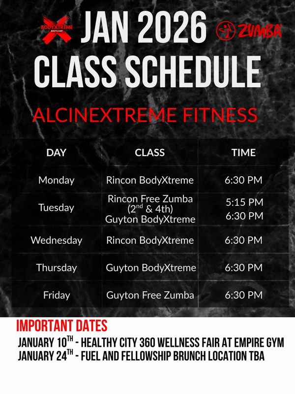 Zumba combines Latin-inspired dance moves with heart-pumping cardio, easy-to-follow choreography, and a whole lot of fun. Whether you're a seasoned dancer or just love to move to the beat, Alcine brings the energy, encouragement, and spice to help you shake, shimmy, and sweat your way to your goals.